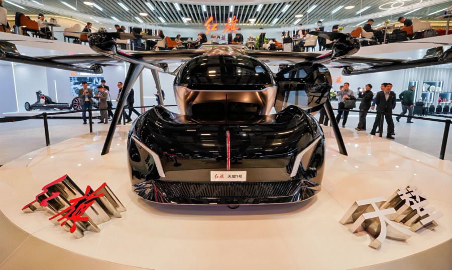 2025年4月23日,红旗品牌在上海国际车展展示的红旗飞行汽车。(中国一汽供图)
