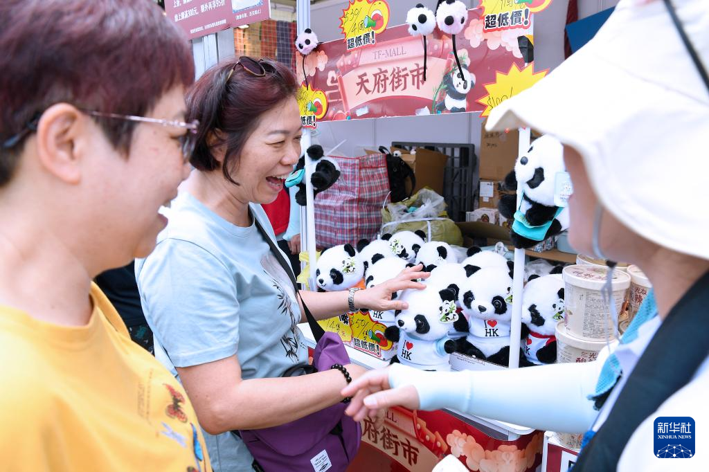 6月1日,市民在第三届“家乡市集嘉年华”香港四川社团总会的摊位上选购熊猫玩偶。新华社记者 陈铎 摄