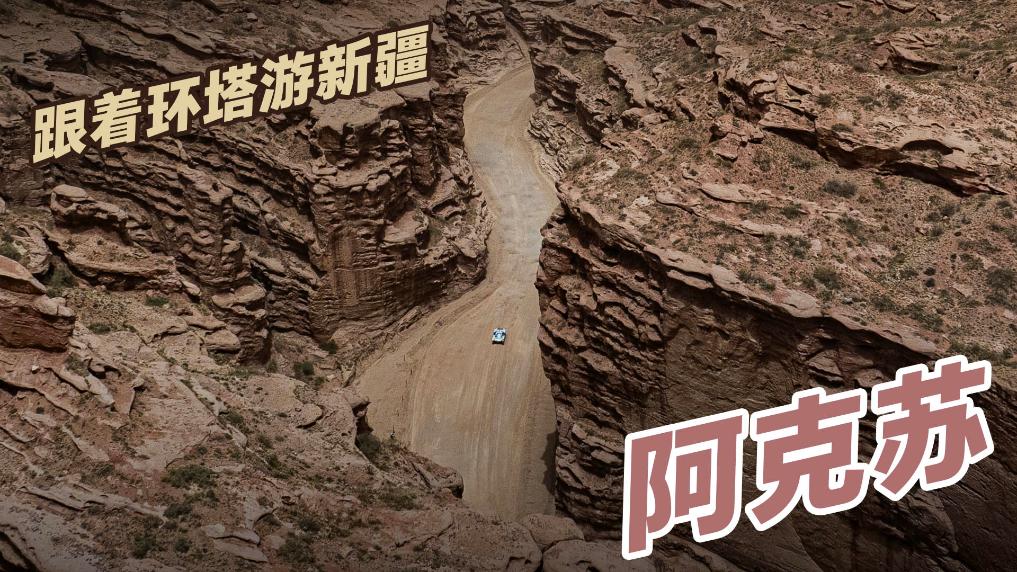 ↑5月21日,赛车行驶在第一赛段赛道上(无人机照片)。第一赛段比赛在新疆阿克苏地区温宿县进行,全长150多公里,包括高山、峡谷、河道等多种地形。新华社记者 胡星宇 摄