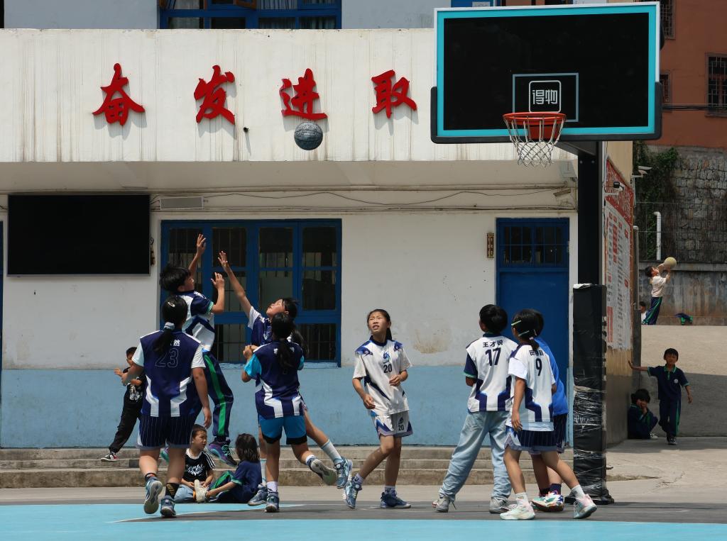 回龙小学的学生在打篮球。新华社记者 郑明鸿 摄