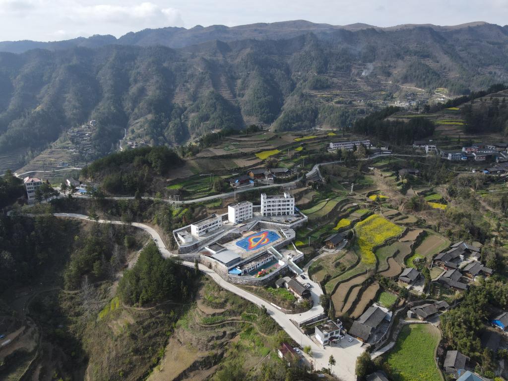 石阡县一所村小的塑胶篮球场(无人机照片)。新华社记者 郑明鸿 摄