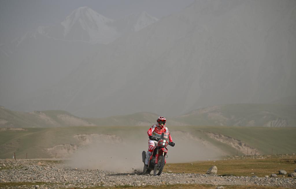 5月26日,红驼机车厂队一队车手方响量在比赛中。当日,2025中国环塔国际拉力赛进入第五赛段。新华社记者 辛悦卫 摄