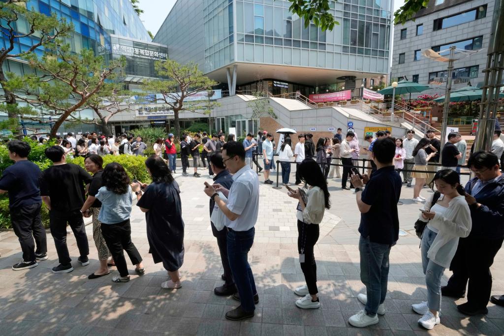 5月30日,选民在首尔一处投票站等待投票。新华社/美联