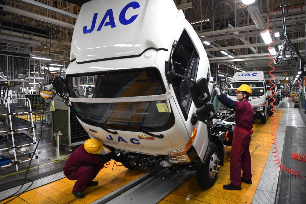 工人在江淮汽车新港基地轻卡生产线上忙碌(2023年2月8日摄)。新华社记者 刘军喜 摄