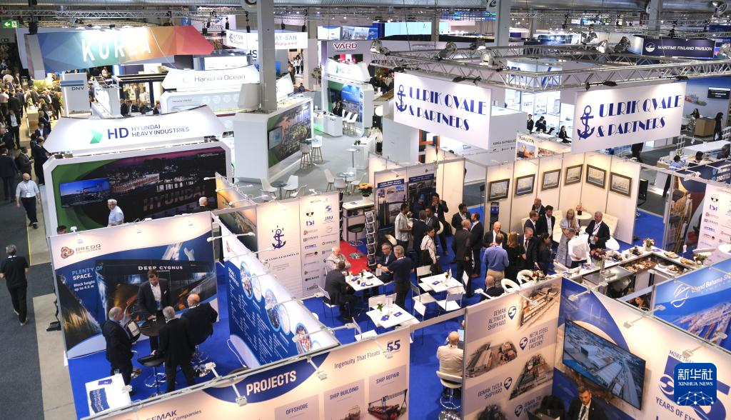 这是6月3日在挪威利勒斯特伦拍摄的挪威国际海事展现场。新华社记者 张玉亮 摄