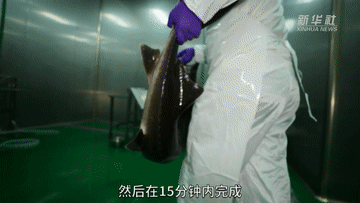 根据不同的鲟鱼品种,一般要经过7到20年的养殖,才能取卵。然后在15分钟内完成16道工序。
