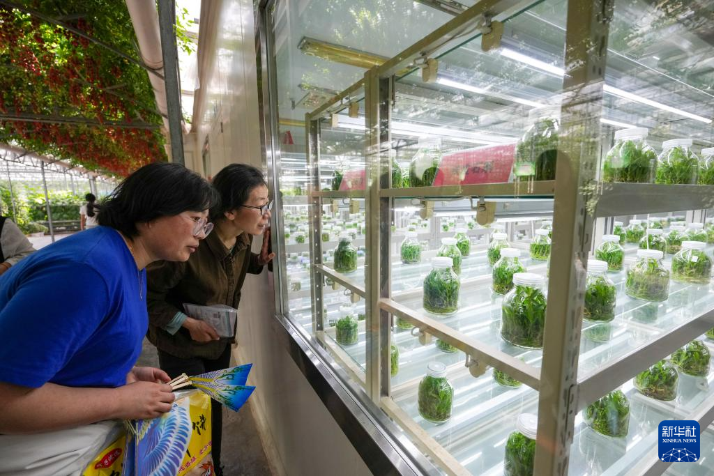 人们在位于山东省寿光市的寿光蔬菜高科技示范园内参观(5月23日摄)。 新华社记者 徐速绘 摄
