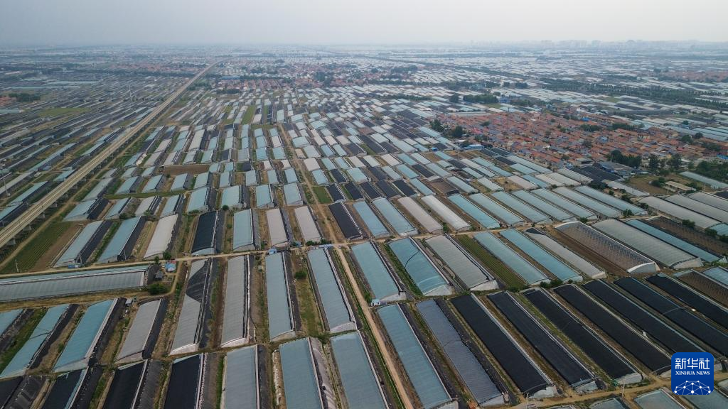 这是位于山东省寿光市的大棚(5月24日摄,无人机照片)。 新华社记者 徐速绘 摄