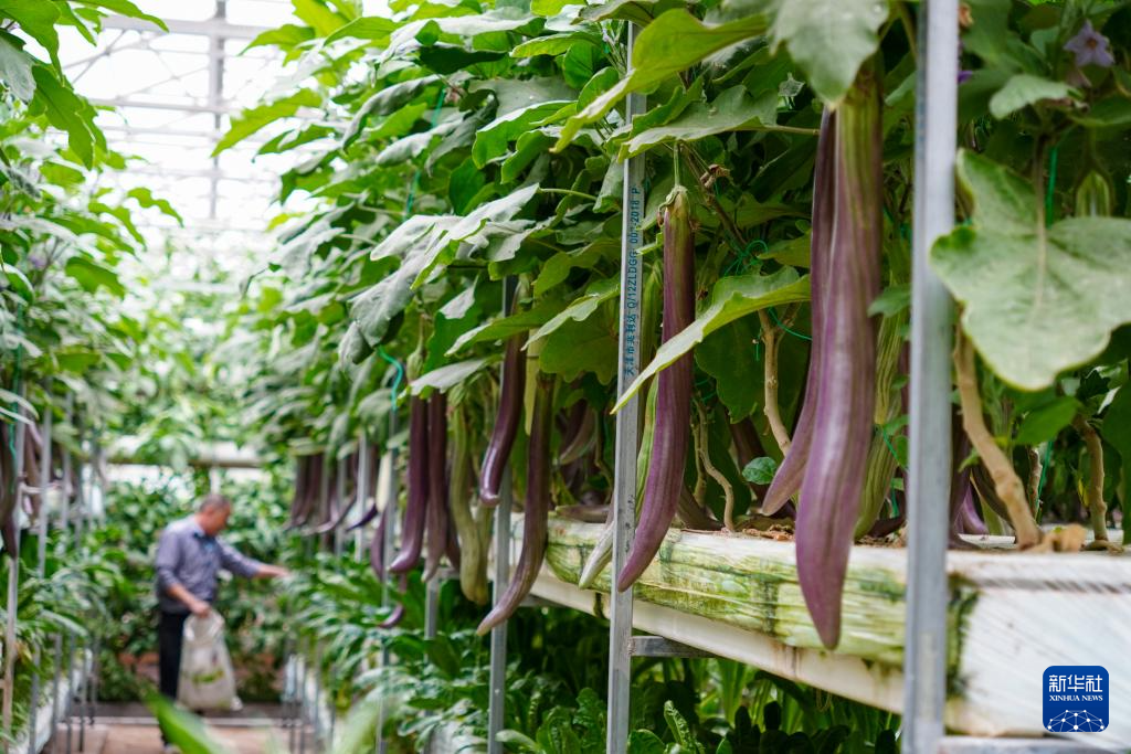 这是在寿光蔬菜高科技示范园内展示的蔬菜立体化先进种植模式(5月23日摄)。 新华社记者 徐速绘 摄