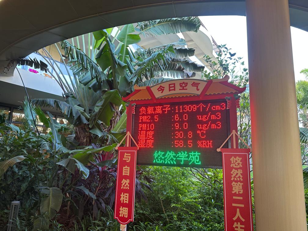 海南省陵水黎族自治县的一家康养机构实时监测环境空气数值。新华社记者陈凯姿 摄