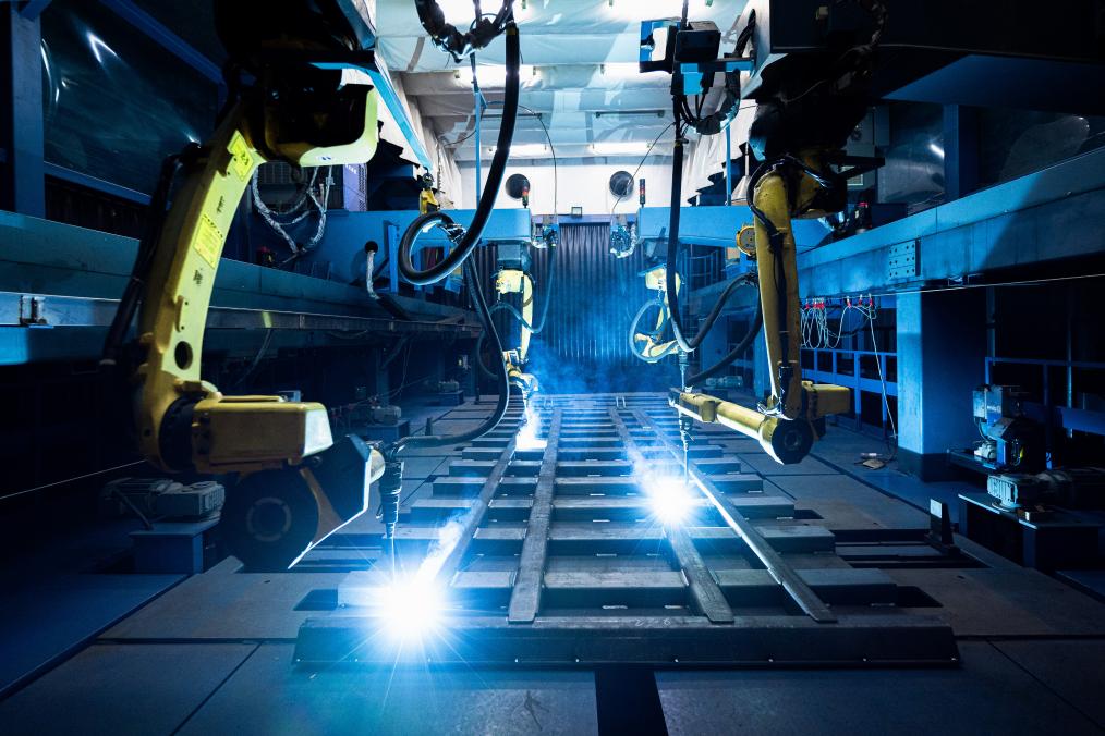 工业机器人在中国重汽集团湖北华威专用汽车有限公司自卸车智能化生产线上作业。新华社记者肖艺九 摄