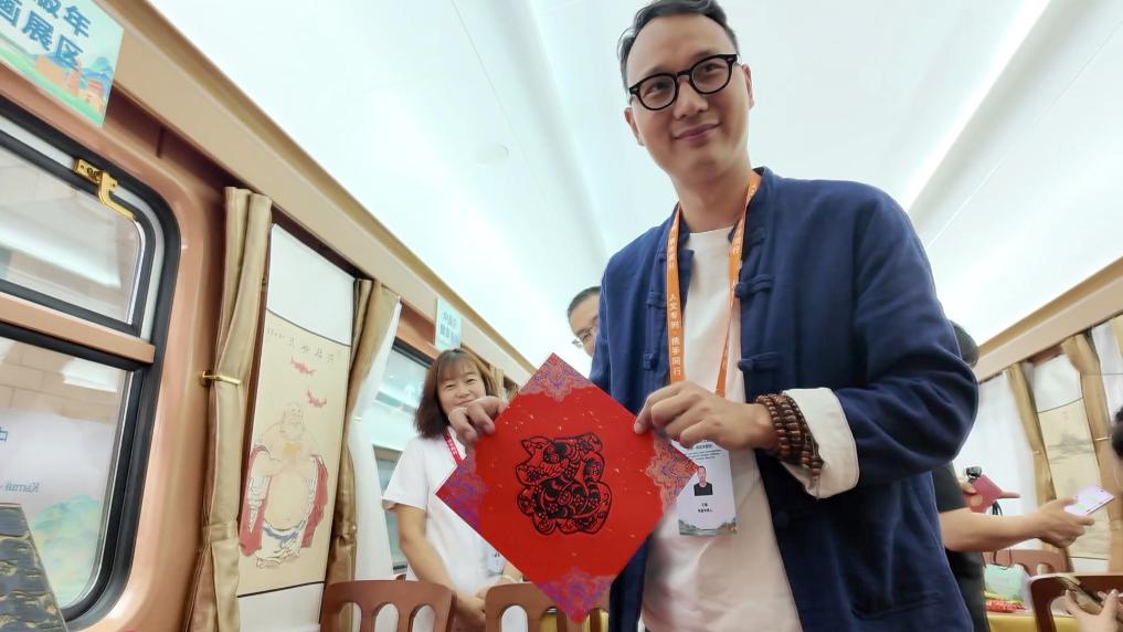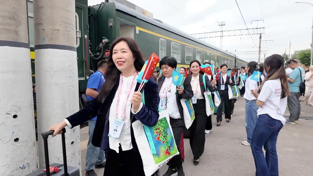 专列车身采用“丝路金桥”主题涂装,车内装饰融入大雁塔、古城墙、钟楼等西安地标以及哈萨克斯坦地标性建筑等元素。此外,专列上的文化活动也格外丰富。车厢内每日安排中医养生、手工制作、书画创作等文化交流活动,沿途还开展了合唱、民乐演奏等文化展演,让列车成为“流动的文化交流长廊”。