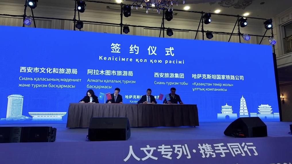 6月1日,“中国-中亚国际人文旅游专列首发开行欢迎仪式暨西安-阿拉木图人文旅游交流周开幕式”在阿拉木图举行。活动现场,覆盖文旅、交通、体育、经贸、医疗等全方位立体深度合作备忘录集中签约落地。