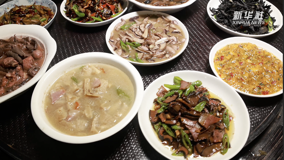 人们以煮、炒、舂、包烧等方式制作“全菌宴”