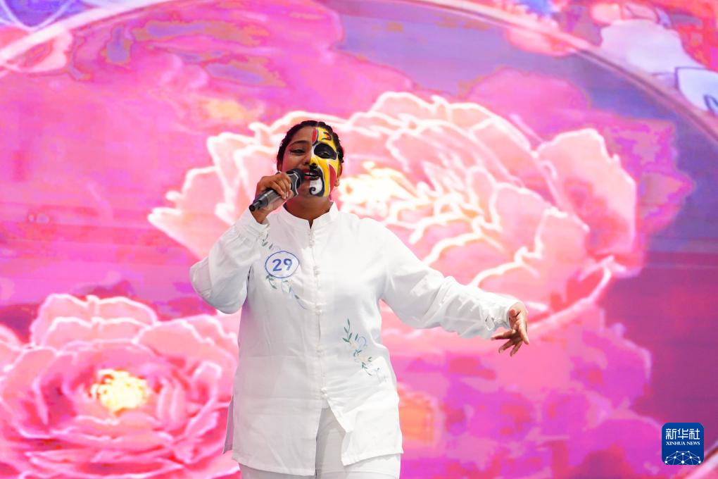 6月3日,在斯里兰卡首都科伦坡,“汉语桥”世界大学生中文比赛斯里兰卡赛区决赛的参赛选手展示才艺。新华社记者 陈冬书 摄