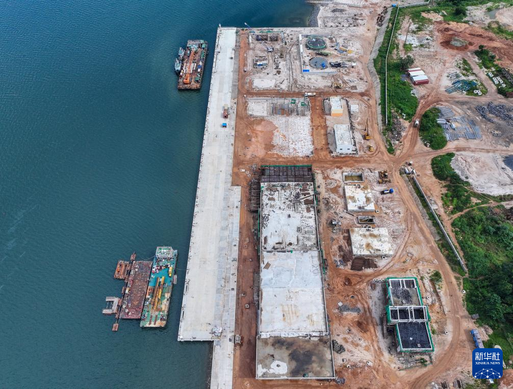 这是4月23日在坦桑尼亚东南部拍摄的基卢瓦渔港建设工地(无人机照片)。新华社记者 李亚辉 摄