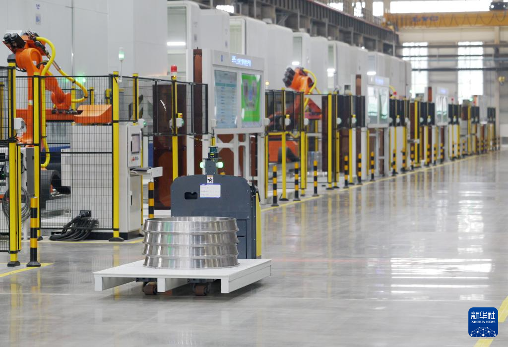 5月22日,自动导引车在洛轴集团智能工厂生产线上作业。新华社记者 李嘉南 摄