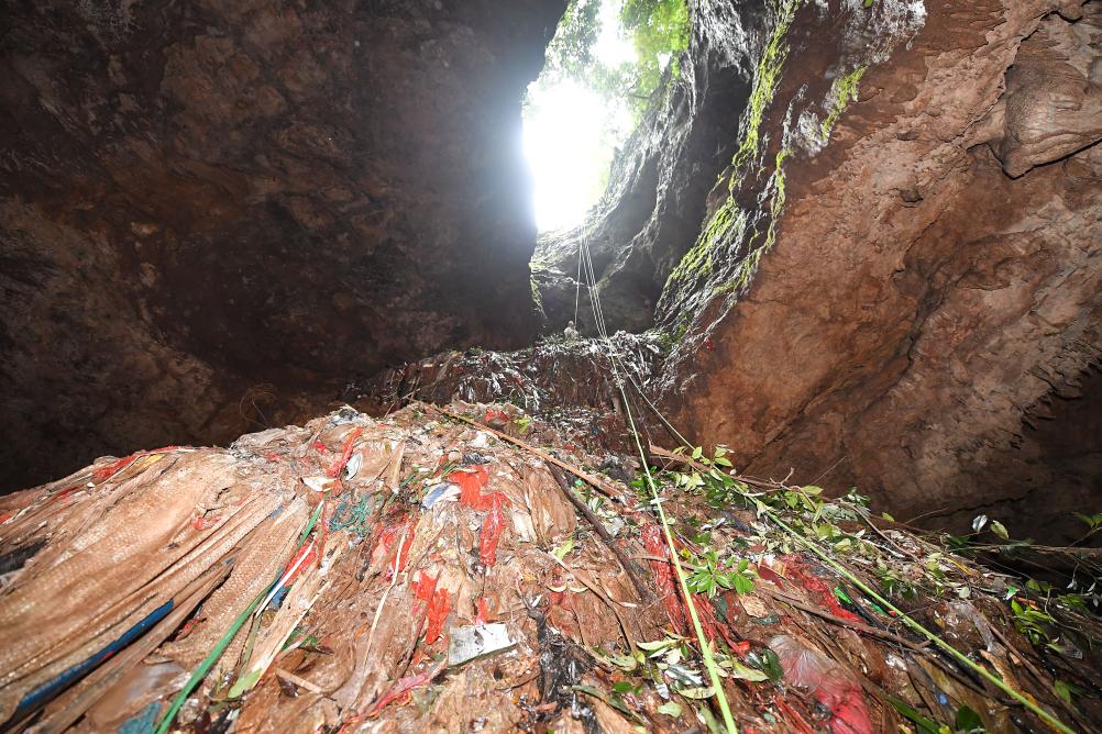 这是慈利县东岳观镇彩球村大田坑溶洞内的垃圾(6月4日摄)。新华社发(向韬 摄)
