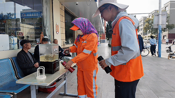 尘是讨厌的,光也不见得友好。随着中午来临,温度上升,银川的紫外线格外强烈。我正想穿上环卫工人们常穿的长袖环卫服时,王莲英阻止了我,“这个不透气,闷得慌,你忍不了的。我们是习惯了。”说完便“赶”我到阴凉处休息。
