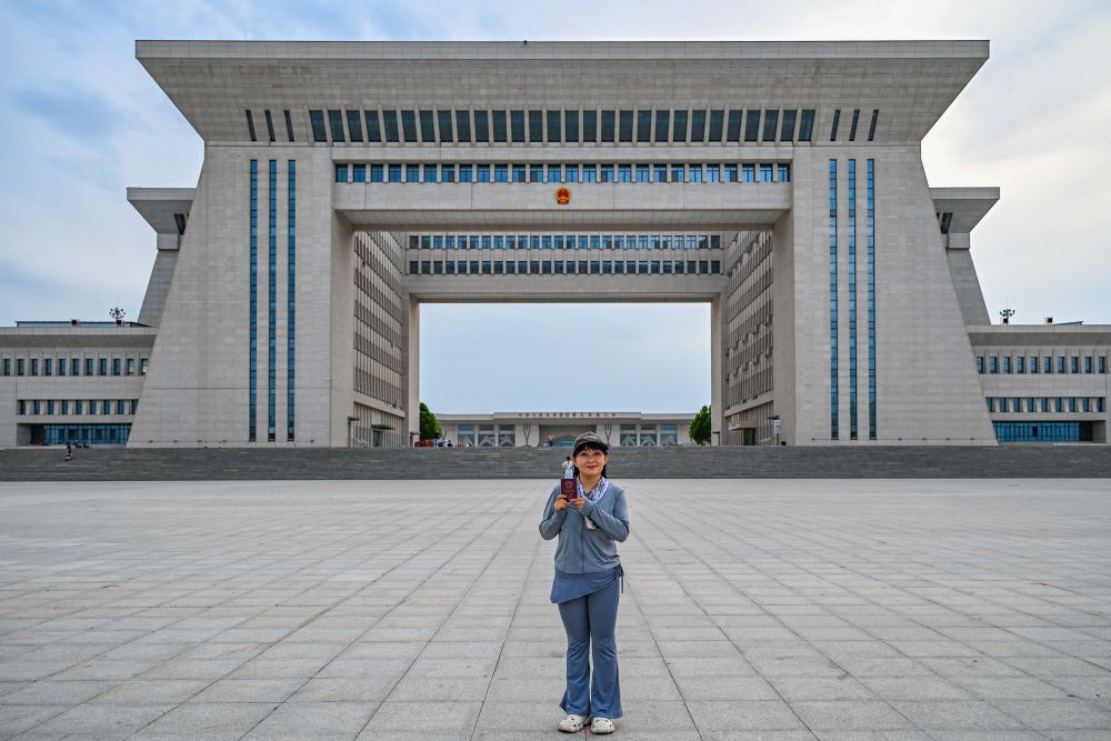 ↑高云在霍尔果斯口岸等待验放。她的身后是霍尔果斯新国门。高云说:“每次路过我们的国门,心里都感觉暖暖的。”