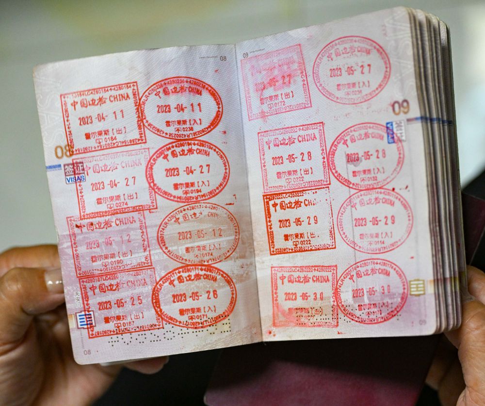↑这是高云的第一本护照,已经盖满印章。这些印章记录着一次次汽车“摆渡”旅程。