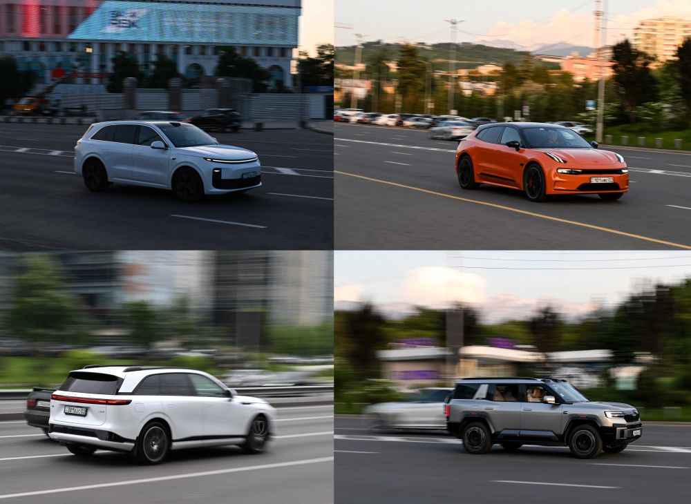 ↑中国新能源汽车行驶在阿拉木图的街道上(拼版照片)。