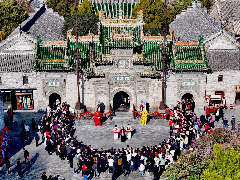 2025年1月30日,亳州北关历史街区,民间艺人在进行民俗表演。新华社发(刘勤利 摄)