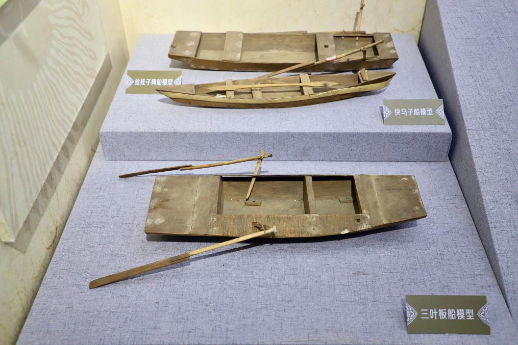 黑龙江省民族博物馆内,赫哲族曾使用的渔船模型。新华社记者徐凯鑫摄