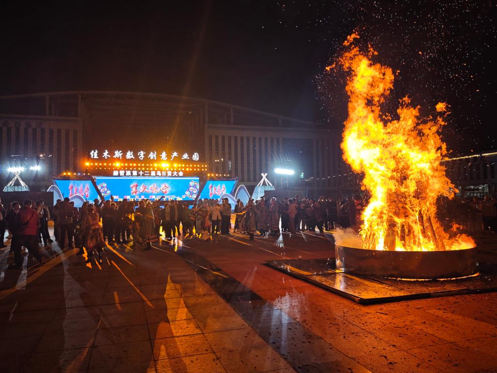 赫哲族第十二届乌日贡大会的篝火晚会。(受访者供图)