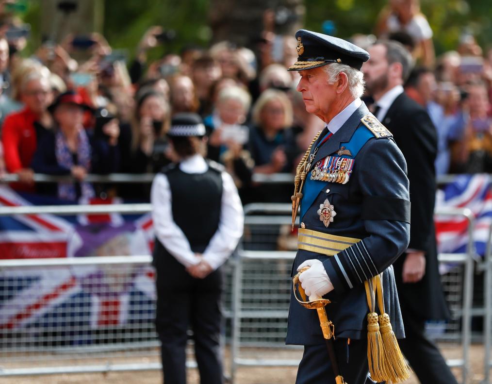 9月14日,在英国伦敦,英国国王查尔斯三世护送英国女王伊丽莎白二世的灵柩。