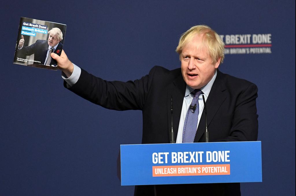2019年11月24日,在英国特尔福德,英国首相、保守党领袖鲍里斯·约翰逊公布竞选宣言。