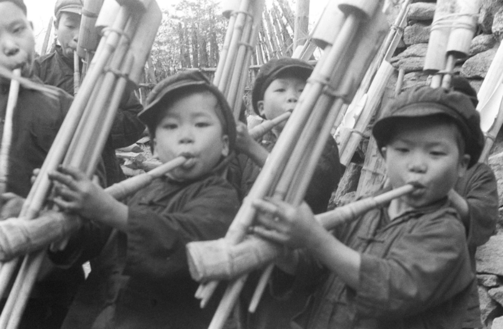 1964年1月,我的前辈何国正曾经记录了上面的一个瞬间:在广西大苗山,小芦笙手高奏芦笙迎接苗族新春。60年后,同样是在新春时节,我在乌英苗寨记录下了几乎完全一样的瞬间:孩子们奋力地吹响芦笙——这样的传承已延续千年,而且还将一如既往地持续下去。