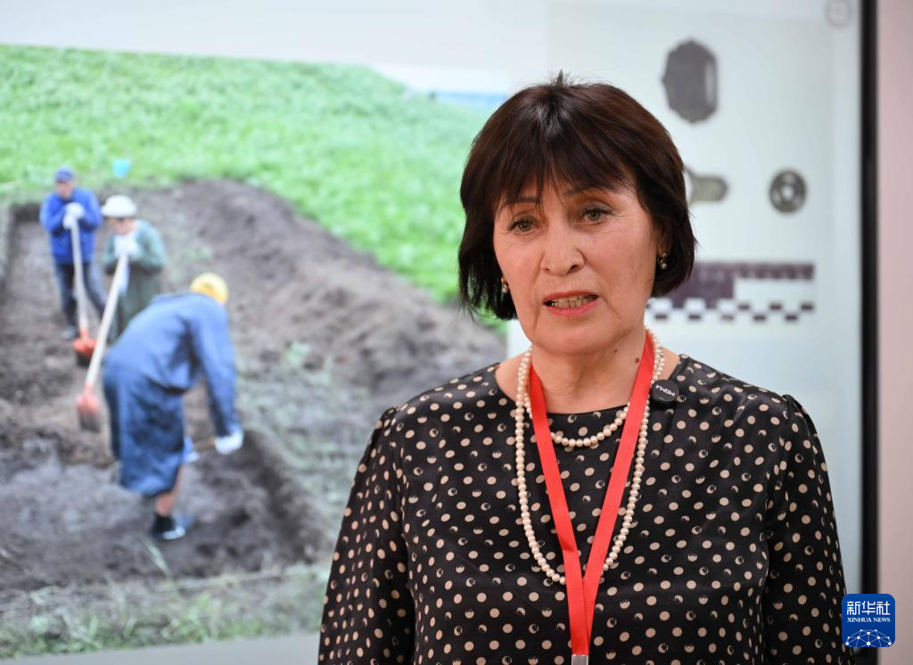 6月3日,哈萨克斯坦伊塞克国家历史文化博物馆馆长古丽米拉接受新华社记者采访。新华社记者 李任滋 摄