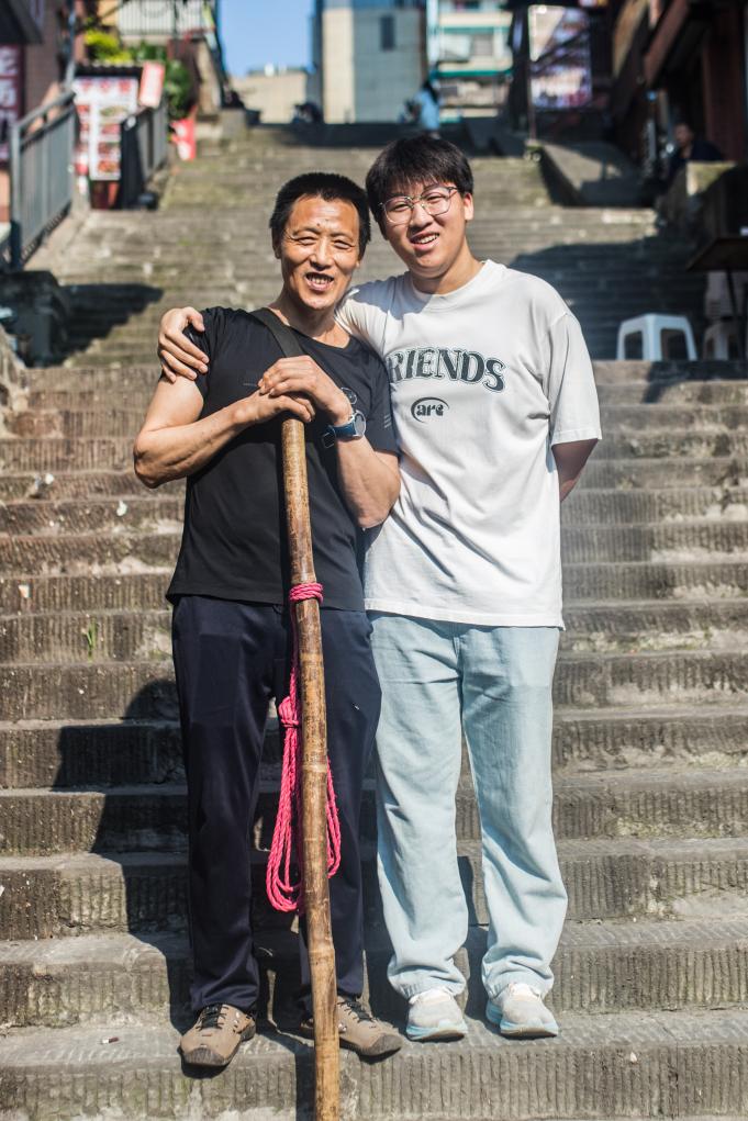 ↑2025年6月14日,冉光辉(左)和冉俊超走上石阶。