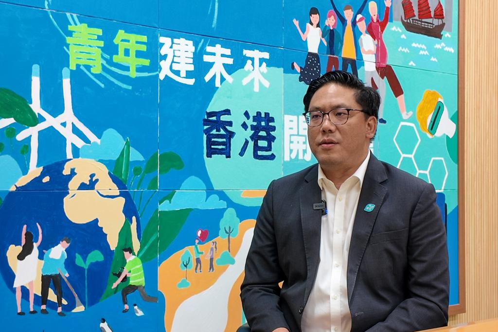 5月28日,香港特区政府民政及青年事务局副局长梁宏正接受记者采访。新华社发(龙镜伊 摄)