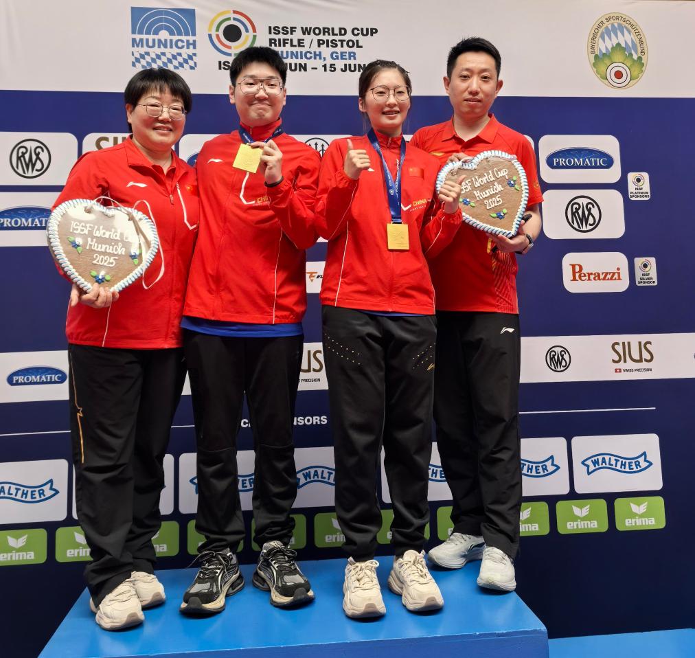 新华社北京6月14日电 国际射击运动联合会官网14日消息,在射击世界杯慕尼黑站(步手枪项目)收官日的两项混合团体比赛中,中国队姚千寻和胡凯拿下气手枪冠军,王子菲和盛李豪的组合打破气步枪的资格赛世界纪录并收获银牌。