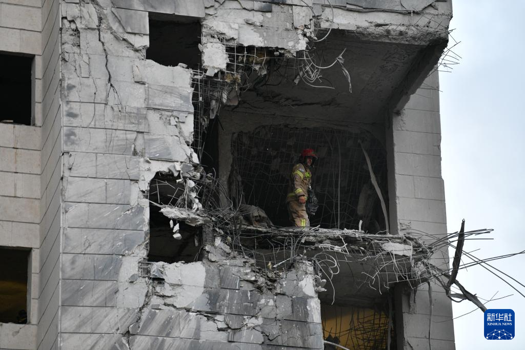 这是6月16日在以色列佩塔提克瓦拍摄的在导弹袭击中被毁的建筑。新华社/基尼图片社
