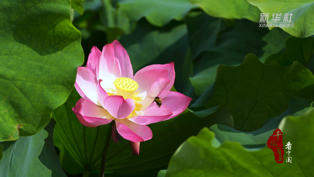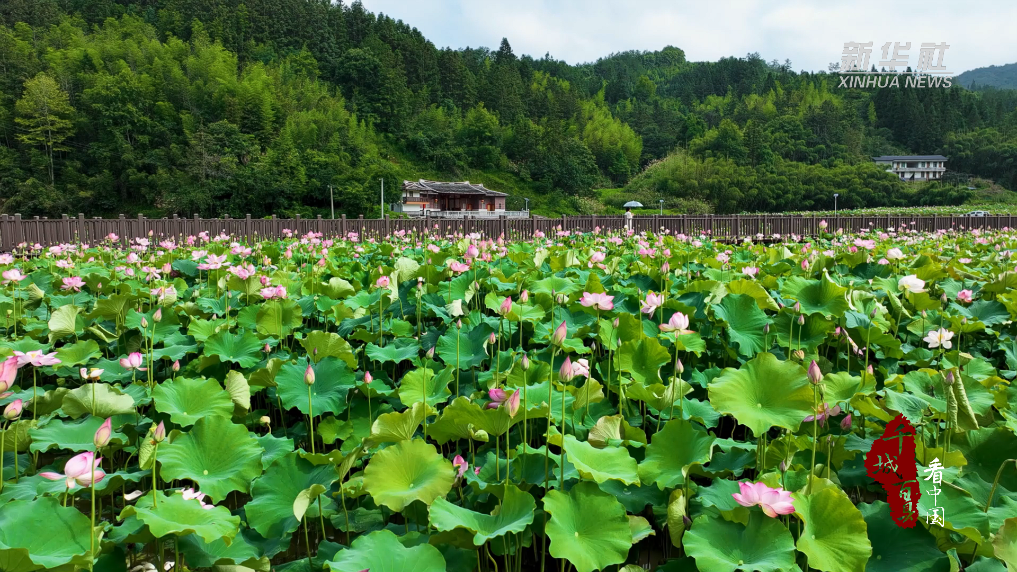 仲夏时节,福建省德化县葛坑镇龙塔村的荷花渐次盛开。粉红花朵似佳人罗裳,在风中轻摇。蜜蜂穿梭在碧绿荷叶间,忙碌地采集着花蜜,勾勒出一方生机盎然的清凉天地。