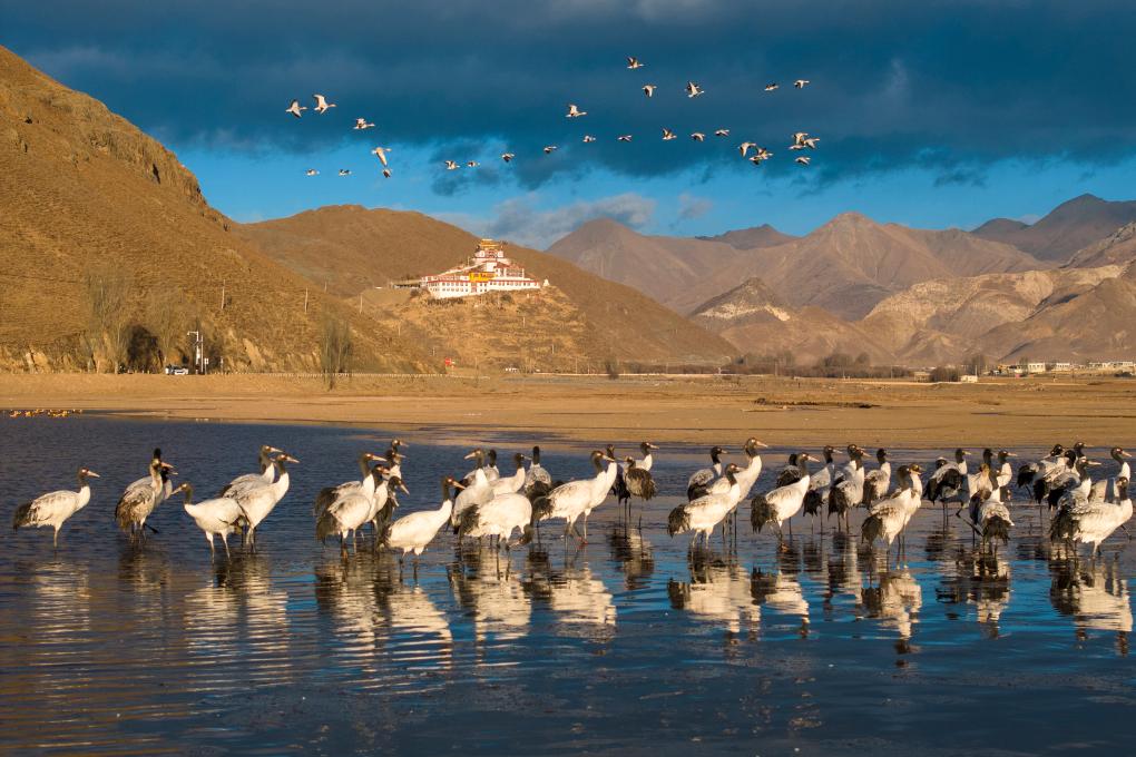 西藏全境既有黑颈鹤的越冬地,又有它们的繁殖地,还有迁徙途中的停留地。多年来,新华社西藏分社的摄影记者们步履不停,追寻“高原仙子”的踪迹,留下了一张张动人的画面。