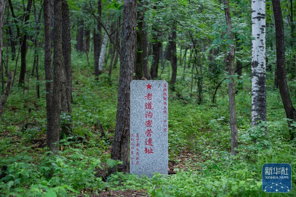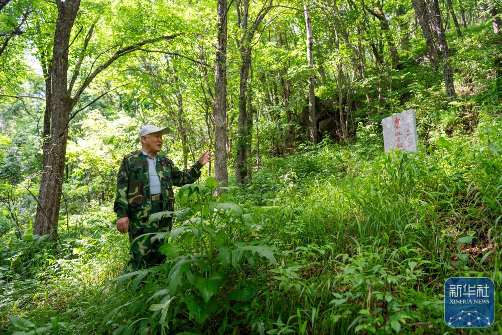 ↑ 6月17日,在七星砬子抗联密营遗址内,集贤县革命老区建设促进会会长朴永鹤介绍抗联十一军军政干部学校遗址。