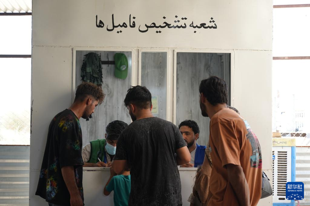 6月17日,在阿富汗尼姆鲁兹省首府扎兰季市与伊朗接壤的普勒阿卜里沙姆口岸,阿富汗归国难民进行入境登记。新华社记者 李昂 摄