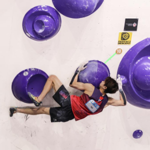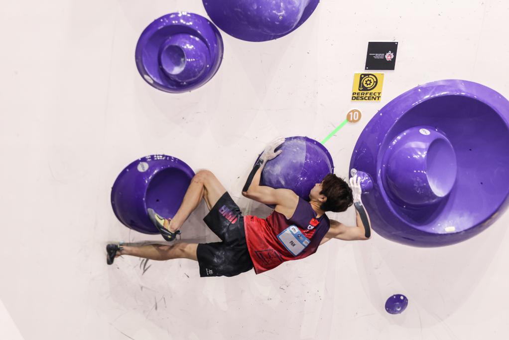 比赛进程已来到四条线路中的最后一条,如果潘愚非在三次尝试内登顶,他就将暂时跃居第一,获得冲金的希望。如果夺金,这也将是中国攀岩在攀石项目中的世界大赛首金。