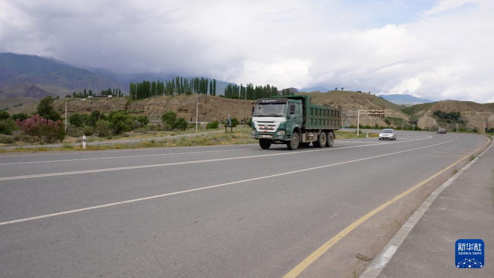 6月2日,在吉尔吉斯斯坦贾拉拉巴德州托古兹托罗区,车辆在新北南公路二期路段行驶。新华社发(阿扎马特摄)