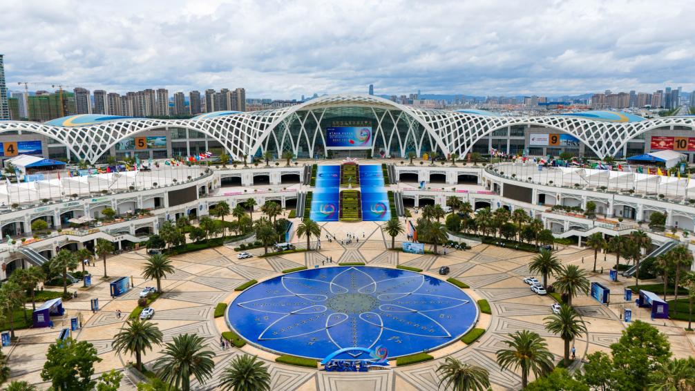 6月18日拍摄的第9届中国—南亚博览会举办地昆明滇池国际会展中心。(无人机照片彭奕凯摄)