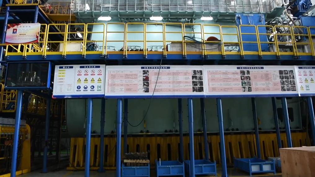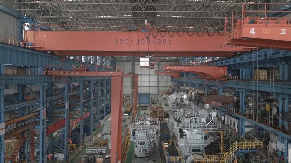 位于青岛西海岸新区的中船发动机生产车间内,一台四五层楼高的船舶发动机正在安装。从焊接、机械加工到总装与测试,焊接自动化、组装无人化等先进技术应用其中。