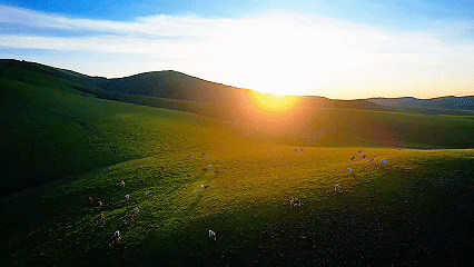 牧民们赶着畜群,穿越罕山,来到夏牧场