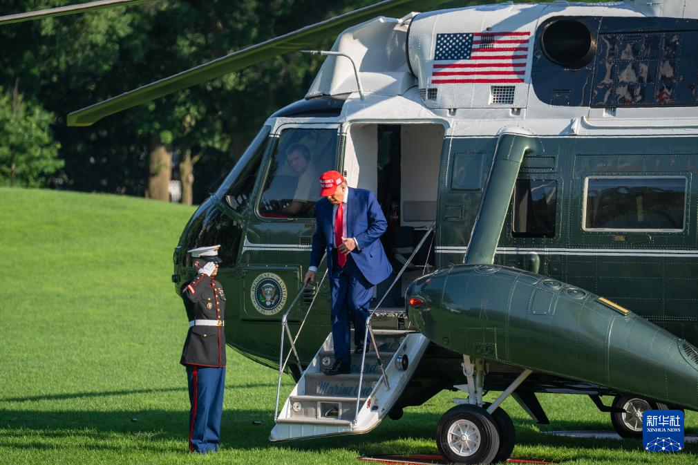 6月21日,美国总统特朗普返回华盛顿白宫。美国总统特朗普6月21日在社交媒体上说,美军已“成功打击”伊朗三处核设施。新华社记者 胡友松 摄