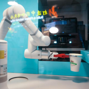 “您的咖啡好了,请享用!”只见机械臂灵活转动,一杯完美萃取的咖啡随即递到越南咖啡商阮明达手中。