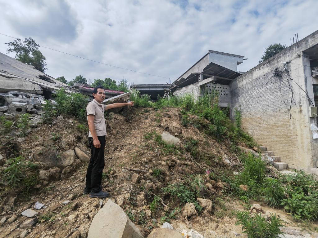 丹寨县南皋乡乌皋村村民潘大林至今仍心有余悸:“5月27日下午5点,村支书说要下大雨了让我们紧急撤离,28日晚上来了暴雨,屋后的坡就垮了,泥巴冲到家里,房子也成了危房。”
