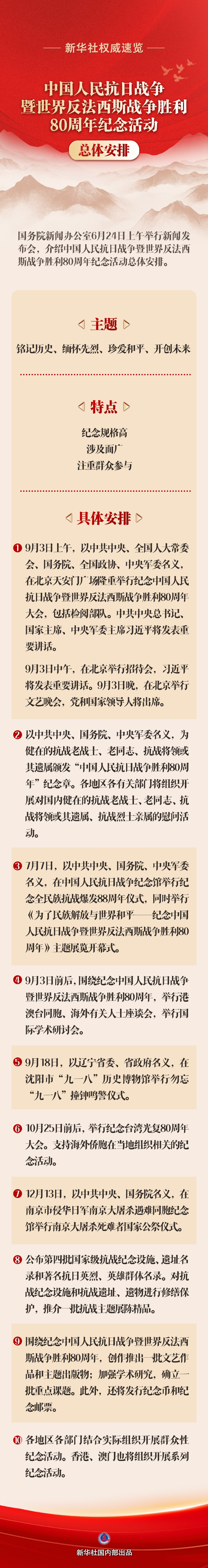 一图读懂:中国人民抗日战争暨世界反法西斯战争胜利80周年纪念活动总体安排-新华网